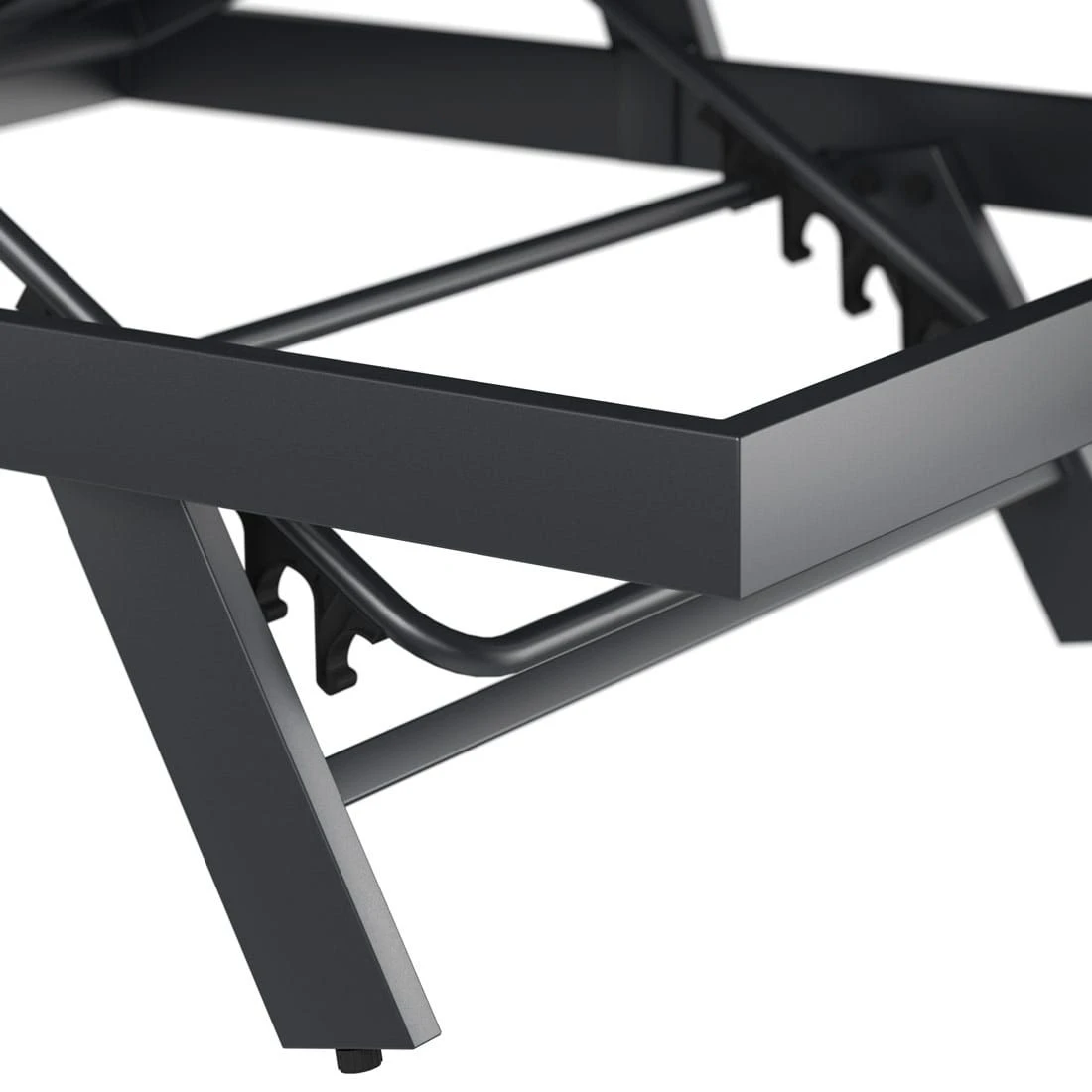 Das Gestell besteht aus Aluminium. Optisch begeistert das Gestell in der Farbe Anthrazit. Die Sitz- und Rückenfläche ist aus dem Marken-Outdoorstoff Olefin gefertigt. Das Material verbindet eine angenehme Stoffoberfläche mit hoher Witterungsbeständigkeit. Denn sowohl Sonne als auch Regen können dem robusten Outdoor-Stoff kaum etwas anhaben.