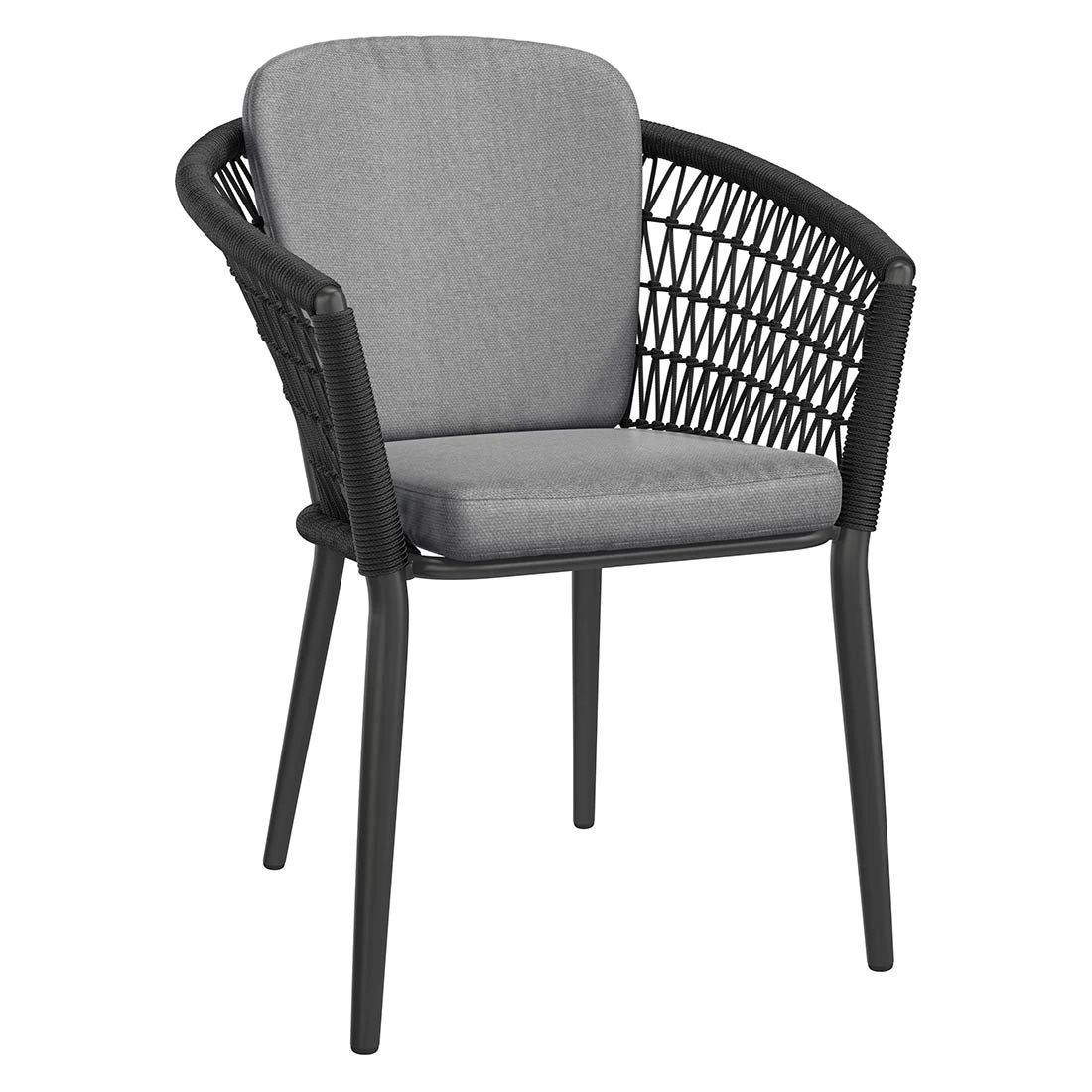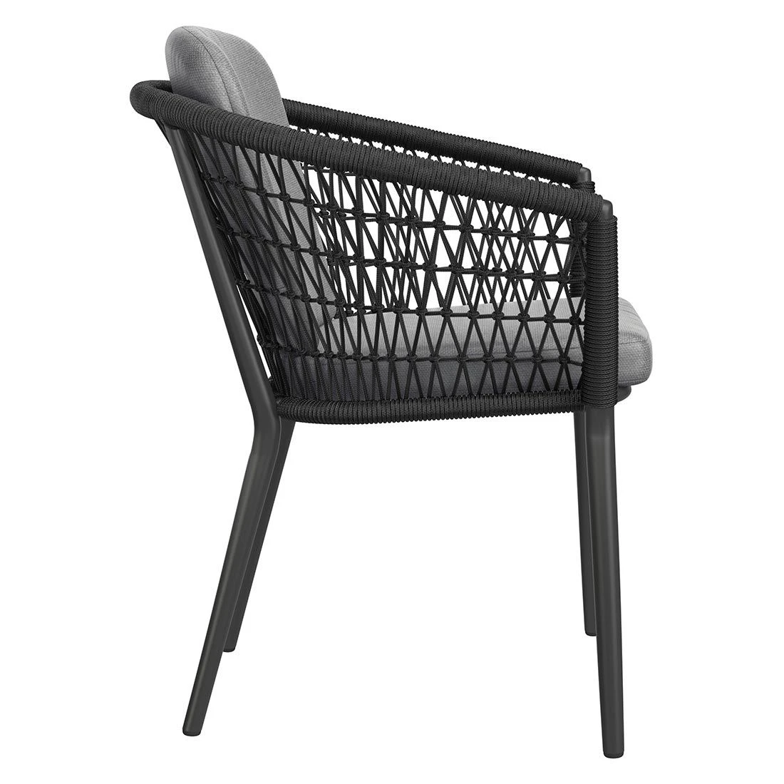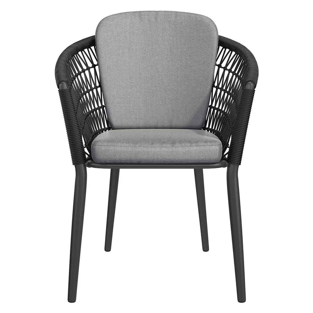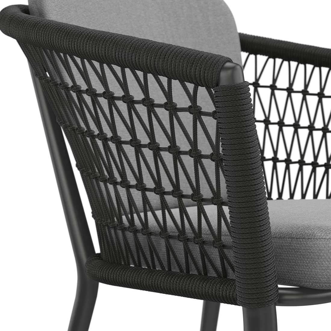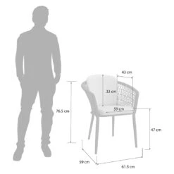 Das Gestell wird aus Aluminium gefertigt. Das geringe Eigengewicht des Materials macht den Gartensessel zu einem robusten, aber dennoch leicht zu transportierenden Sitzmöbel auf Ihrer Terrasse. Hochwertiges Rope umgibt das robuste Gestell und verleiht dem Gartensessel damit einen ganz besonderen Look. Die Bezüge sind aus dem Marken-Outdoorstoff Olefin gefertigt. Das Material verbindet eine angenehme Stoffoberfläche mit hoher Witterungsbeständigkeit. Denn sowohl Sonne als auch Regen können dem robusten Outdoor-Stoff kaum etwas anhaben. Farblich begeistert der Bezug in elegantem Dunkelgrau. Damit der Gartensessel optisch ansprechend ist, sind das Gestell und der Korpus im Farbton Schwarz gehalten.