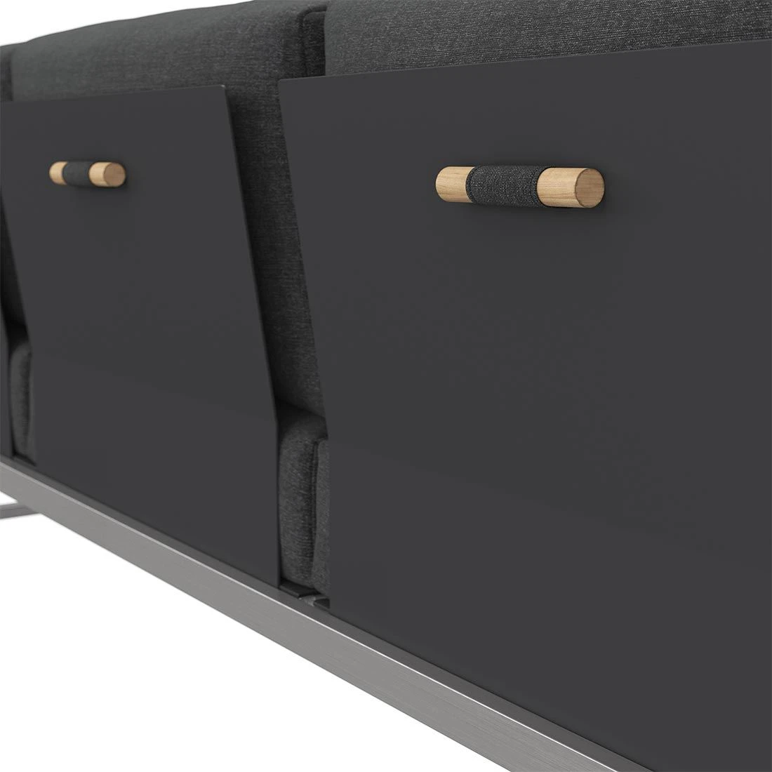 Das Gestell wird aus hochwertigem und rostfreiem Edelstahl hergestellt. Aufgrund des etwas höheren Eigengewichts, steht das Gartensofa dadurch besonders stabil und windsicher auf der Terrasse. Die Sitzfläche ist mit einem outdoortauglichen und komfortablen Stoff bezogen. Auch wenn dieser Wind und Wetter trotzt, empfehlen wir, die abnehmbaren Kissen bei länger andauernder Feuchtigkeit drinnen zu lagern.