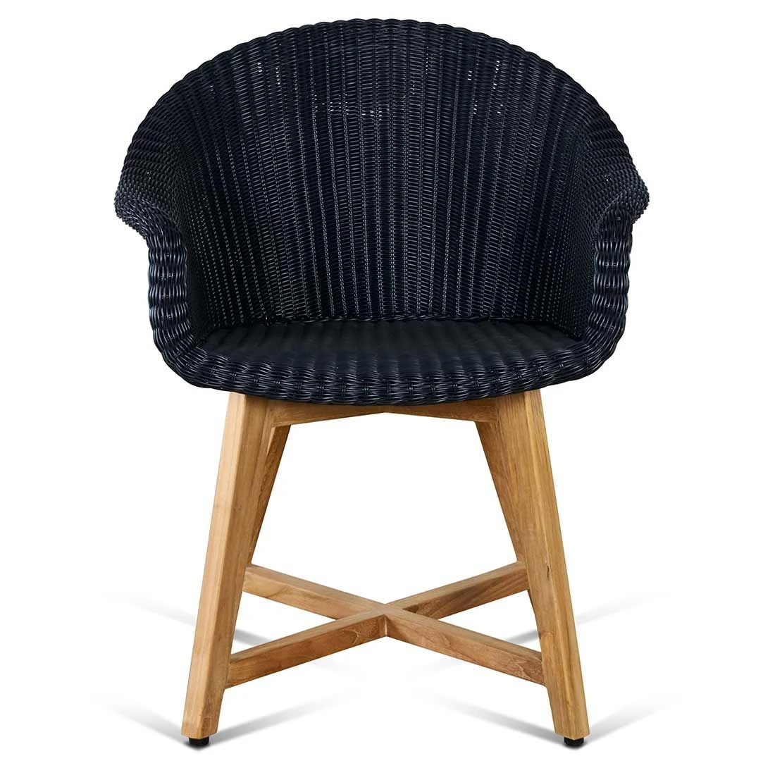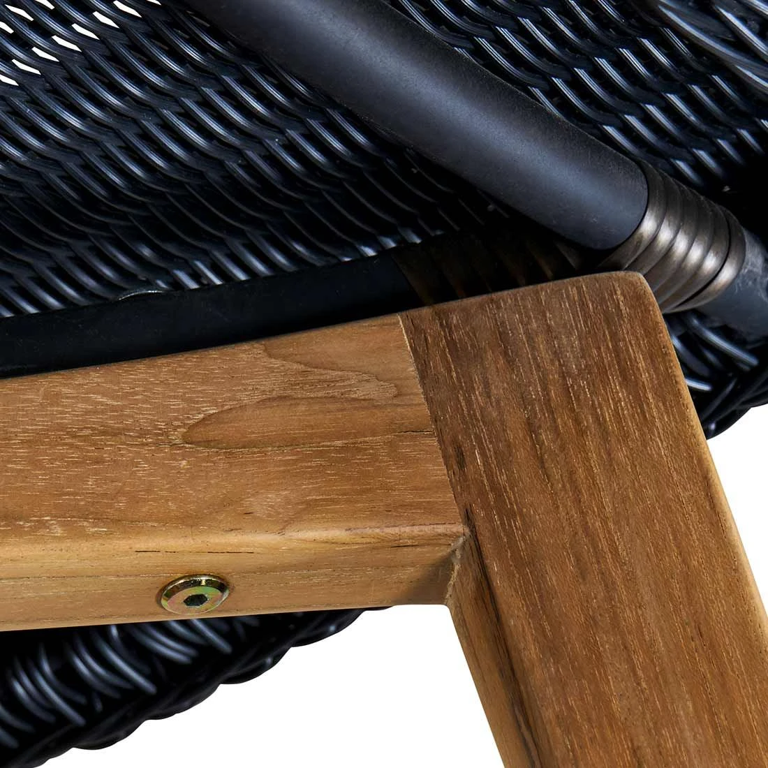 Das robuste Untergestell ist von einem hochwertigen Geflecht aus Polyrattan umwoben. Sowohl die Gestelle als auch die Tischplatte werden aus Teakholz (Recycelt) gefertigt. Somit gibt das Gartenmöbel-Set ein einheitliches Bild auf Ihrer Terrasse ab.
