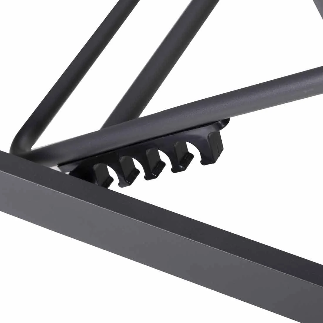Das Gestell besteht aus pflegeleichtem und wetterfestem Aluminium. Für die Bespannung der Sitzfläche wird hochwertiges Textilene verwendet. Es zeichnet sich durch eine hohe Robustheit gegenüber Hitze und Frost aus und ist leicht zu reinigen. Für ein perfekt stimmiges Gesamtbild sorgt die einheitliche Farbgebung in stilvollem Anthrazit.