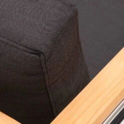 Das Gestell der Ecklounge besteht aus pflegeleichtem, rostfreiem Edelstahl. Optisch begeistert das Gestell in der Farbe Silber. Die Kissen sind mit dem Outdoorstoff Spunpolyester bezogen. Dieses Material ist besonders wetterfest und UV-beständig. Zugleich bietet der Stoff eine angenehme Haptik und Komfort. Die Farbe des Bezugs ist Dunkelgrau. Die Platte des Tisches ist aus wertigem Teakholz hergestellt. Mit ihrem hohen natürlichen Anteil an Öl ist sie bereits von Haus aus perfekt vor Witterungseinflüssen geschützt. Farblich überzeugt die Tischplatte in Natur.