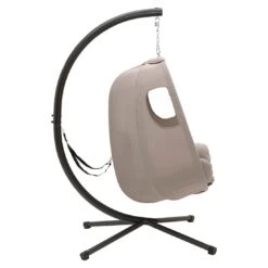 Das Gestell wurde aus robustem Stahl in der Farbe Anthrazit gefertigt. Die Sitzfläche des Hängesessels wurde mit Polyester bespannt. Der Hängesessel ist bis zu einem Gewicht von 120 kg belastbar.