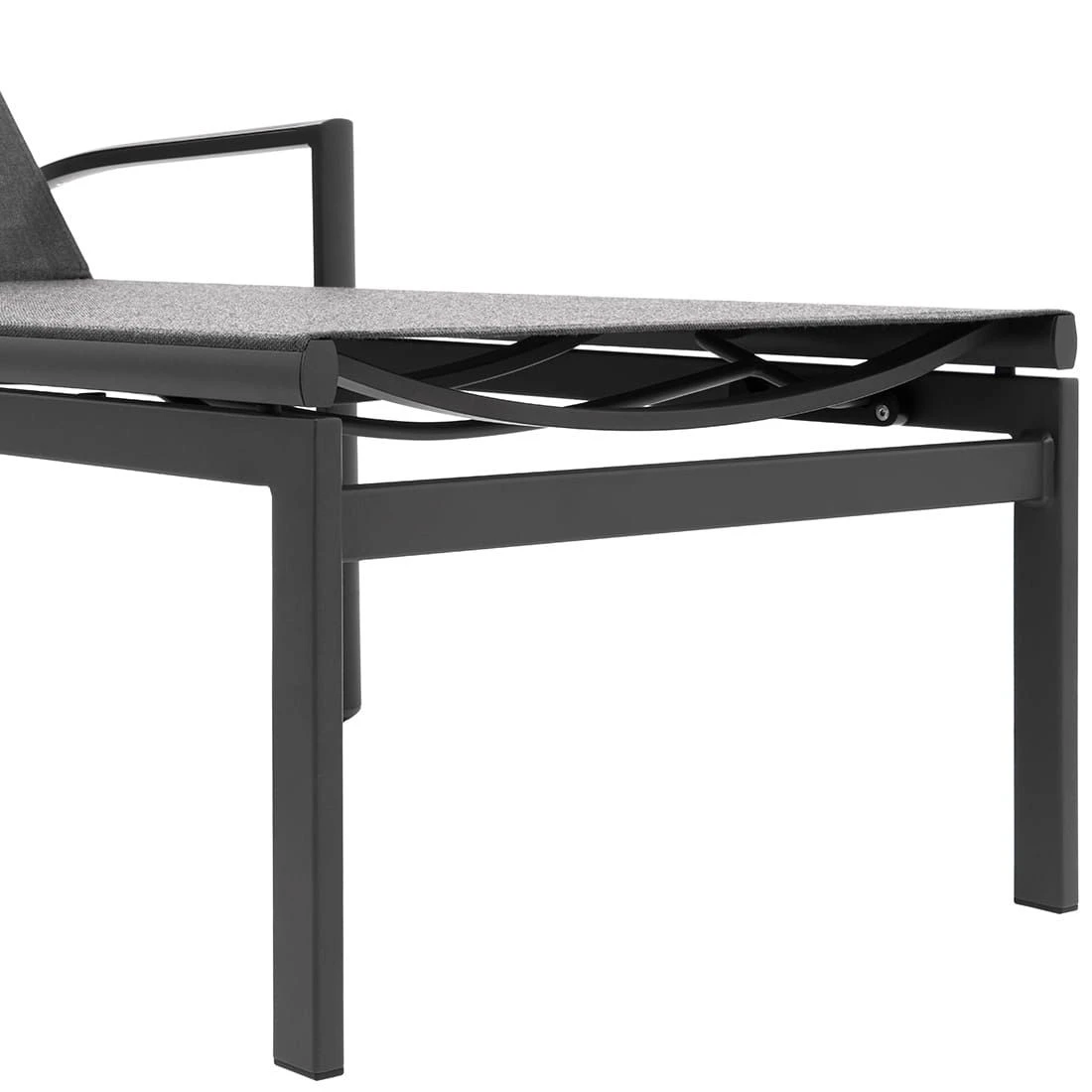 Das Gestell besteht aus pflegeleichtem und wetterfestem Aluminium. Für eine attraktive Optik ist das Gestell im Farbton Anthrazit gehalten. Die Sitzfläche wird mit Textilene bespannt. Dieses Material ist reiß- und wetterfest und zeichnet sich durch eine hohe Beständigkeit gegenüber Hitze und Frost aus. Darüber hinaus ist Textilene leicht zu säubern. Die Sitzfläche hat eine elegante Farbgebung in Coal.