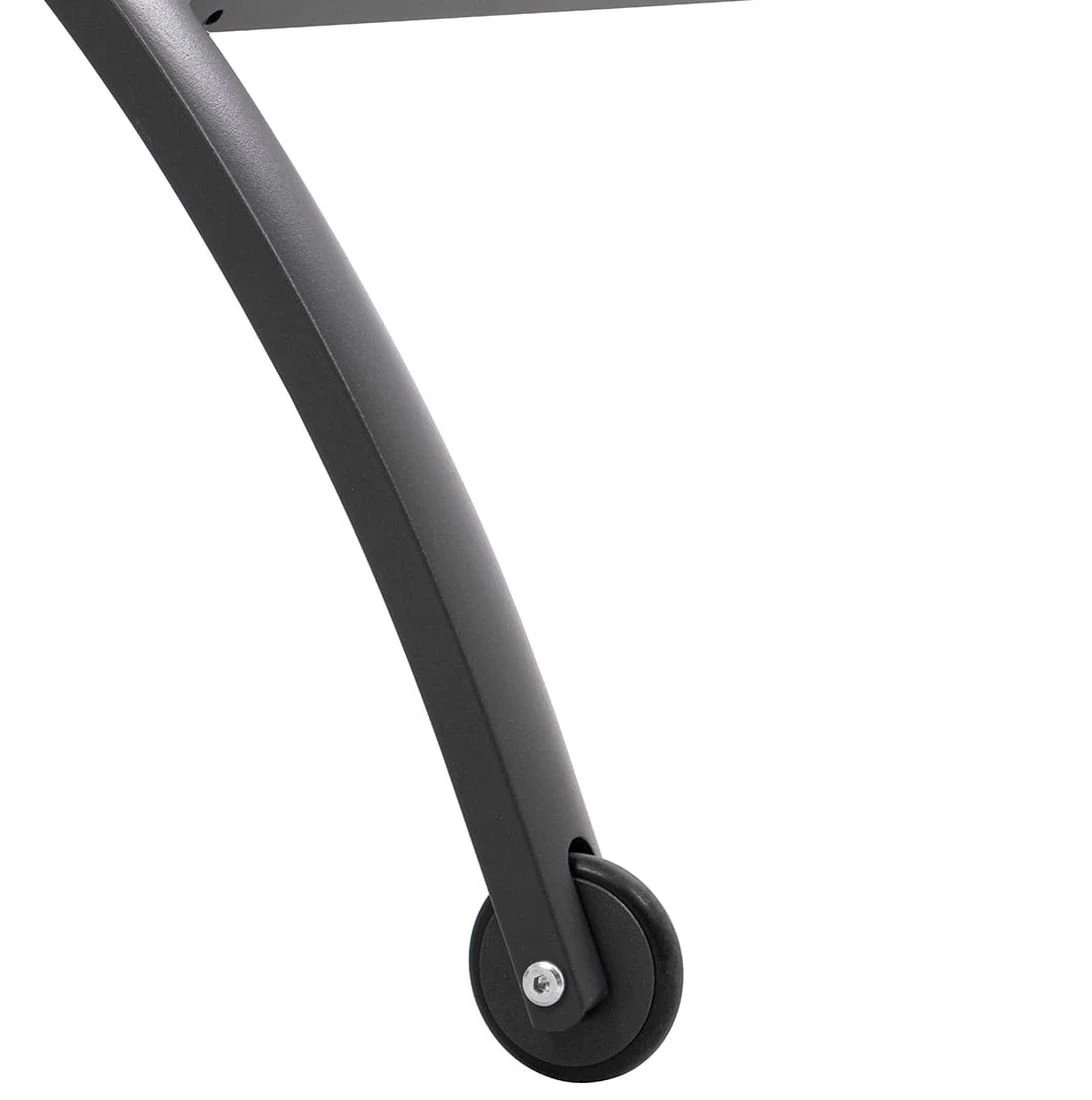 Das Kopfteil lässt sich bequem verstellen, damit Sie sich Ihre gewünschte Sitz- bzw. Liegeposition einfach aussuchen können. Im Handumdrehen den Standort der Liege wechseln? Kein Problem, denn dieses Liegenmodell ist rollbar und verfügt über praktische Räder. Auch wenn Sie mehrere Exemplare dieses Modells besitzen, können Sie diese äußerst kompakt und platzsparend aufbewahren, indem Sie diese stapeln. Damit Sie sich bequem zurücklehnen können, stellen Sie Ihre Wunschposition ganz einfach mittels Rasterschiene an der Rückenlehne ein.