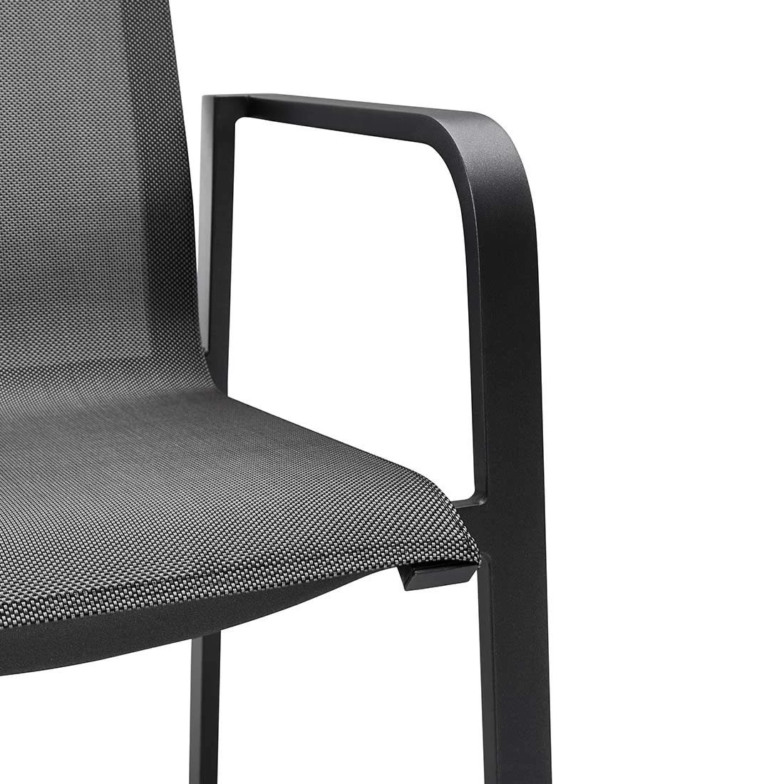 Ein weiterer Pluspunkt des Stapelsessels ist die Bespannung mit Textilene in der Farbe Coal. Dieser Bezugsstoff überzeugt durch eine hohe Robustheit gegenüber Hitze und Frost aus und ist leicht zu reinigen. Ihr Vorteil: Wenn Sie mehrere Exemplare des Modells Julia besitzen, können Sie diese äußerst kompakt und platzsparend aufbewahren, indem Sie diese stapeln. Auch eine stärkere Belastung macht dem robusten Sitzmöbel nichts aus, denn es ist bis 125 kg belastbar. Angenehm ist auch die Sitzhöhe, welche bei 45 cm liegt.