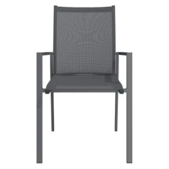 Das Gestell wird aus Aluminium gefertigt. Das geringe Eigengewicht des Materials macht den Stapelsessel zu einem robusten, aber dennoch leicht zu transportierenden Sitzmöbel auf Ihrer Terrasse. Für die Bespannung der Sitzfläche verlässt sich der Hersteller auf hochwertiges Textilene. Es zeichnet sich durch eine hohe Robustheit gegenüber Hitze und Frost aus und ist leicht zu reinigen. Für ein perfekt stimmiges Gesamtbild sorgt die einheitliche Farbgebung in stilvollem Anthrazit.