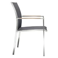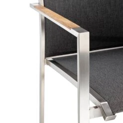 Die Gestelle sind aus Edelstahl gefertigt und sorgen somit für einen modernen Look und eine hohe Stabilität. Ein weiteres Highlight der Sitzmöbel ist die Bespannung der Sitzflächen mit Textilene in der Farbe Coal. Dieses Material zeichnet sich durch eine hohe Robustheit gegenüber Hitze und Frost aus und ist leicht zu reinigen.