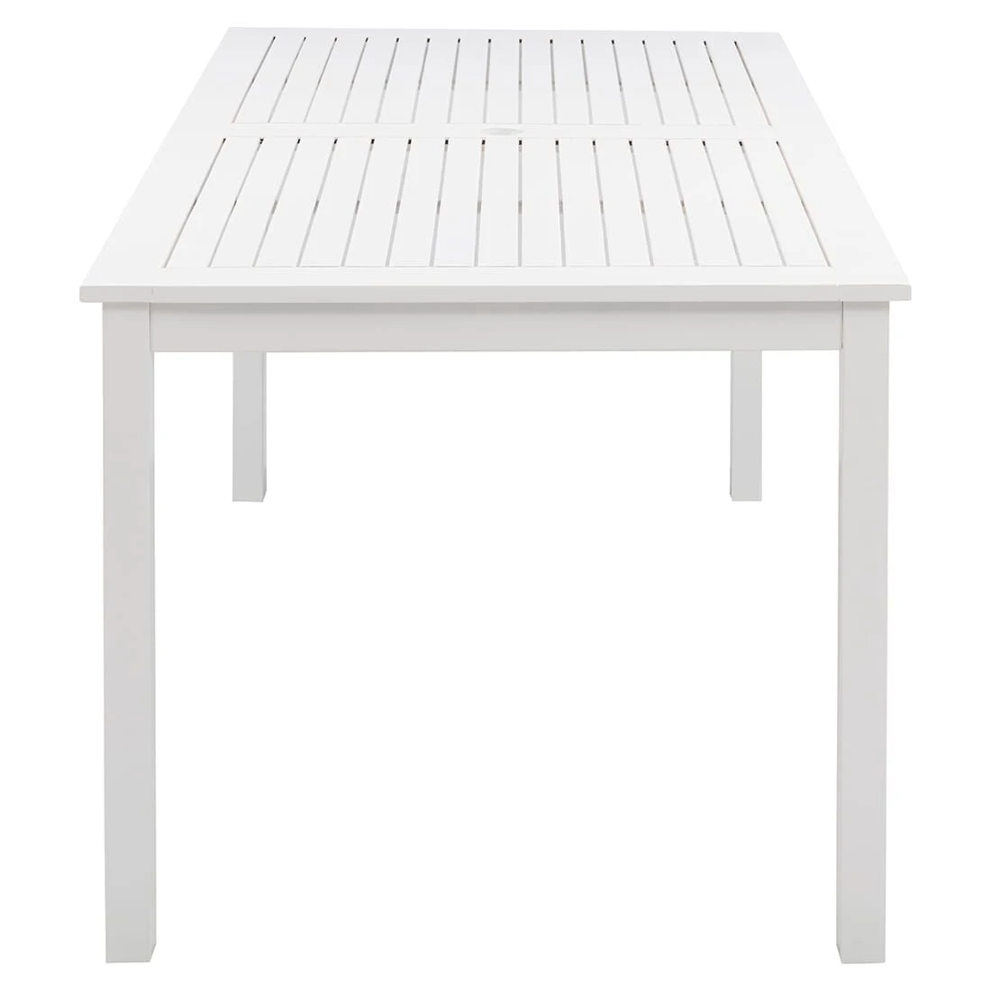 Als klassische Design-Komponente fungiert das geradlinige Vierfußgestell. Der Gartentisch Landhaus ist Ton in Ton gehalten: Sowohl das Gestell als auch die Tischplatte sind aus Akazienholz gefertigt. Farblich ist die Tischplatte in einem schönen Weiß gehalten. Der Gartentisch ist klassisch rechteckig gestaltet.
