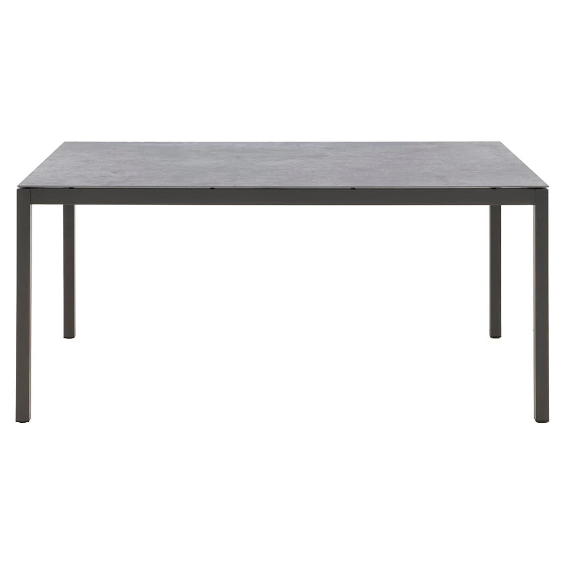 Aufgrund seines Gestells aus Aluminium zählt der Gartentisch Mia zu den modernen Tischmodellen, die sich auf der Terrasse ganz einfach aufstellen und bewegen lassen. Als klassische Design-Komponente fungiert das geradlinige Vierfußgestell. Für die Tischplatte wird das Naturmaterial Keramik verarbeitet. Keramikplatten sind stoß-, schlag- und schnittbeständig und zählen somit zu den stabilsten Tischplatten auf dem Gartentisch-Markt. Farblich ist die Tischplatte in einem schönen Concrete Coal gehalten. Der Gartentisch ist klassisch rechteckig gestaltet.