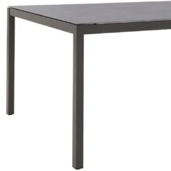 Dank des Gestell-Materials Aluminium zählt der Gartentisch Mia zu den modernen Tischmodellen, die sich im Garten und auf der Terrasse problemlos aufstellen und bewegen lassen. Das klassische Vierfuß-Gestell garantiert Ihnen maximale Beinfreiheit. Keramik ist das Material, das für die Tischplatte gewählt wird. Das robuste Material ist nicht so schwergewichtig wie Naturstein, sorgt allerdings ebenso für windsicheren Halt im heimischen Garten. Für ein elegantes Gesamtbild erscheint die Platte in der Farbe Concrete Coal. Die rechteckige Form ermöglicht es Ihnen, den Gartentisch in Ecken und an Häuserwänden platzsparend einzusetzen.