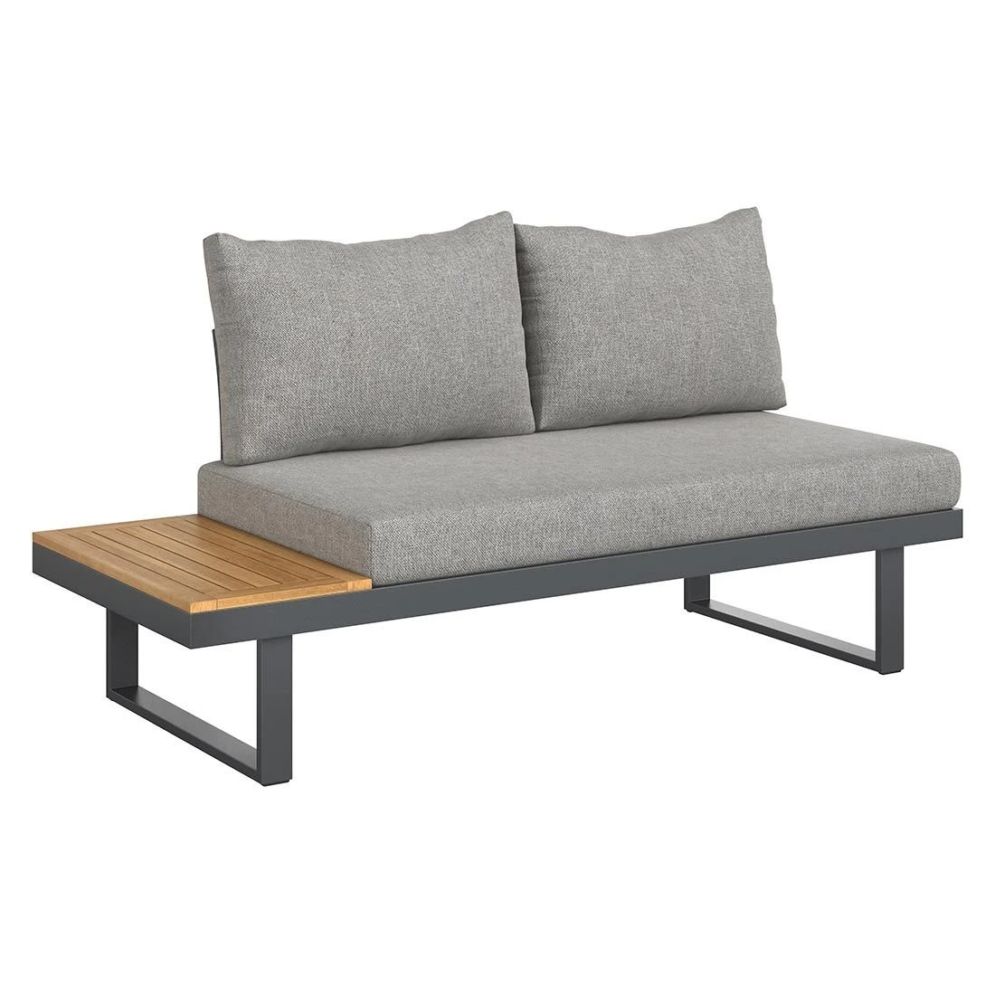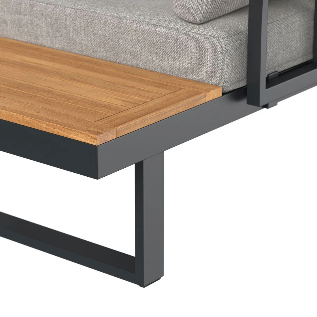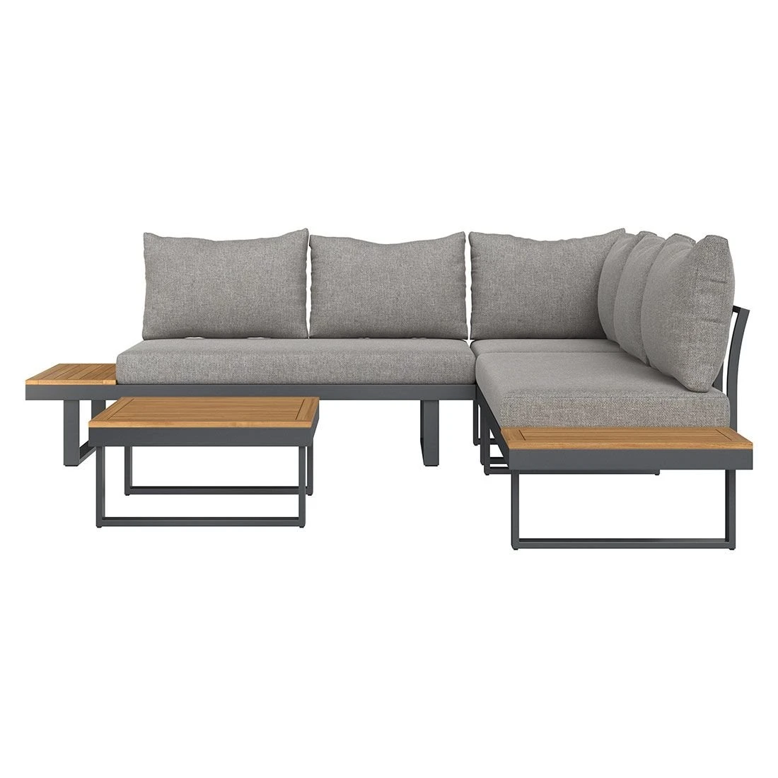 Als Gestellmaterial hat der Hersteller hochwertiges Aluminium gewählt. Optisch begeistert das Gestell in der Farbe Dunkelgrau. Der Bezug der Ecklounge ist aus Kunstfaser gefertigt. Für eine längere Haltbarkeit empfehlen wir bei stärkerem oder lang anhaltendem Regen, die abnehmbaren Kissen im Innenraum zu lagern. Die Farbe des Bezugs ist Hellgrau. Für ein naturnahes Erlebnis im Garten sorgt die Tischplatte aus schönem Akazienholz. Die Tischplatte ist Natur.