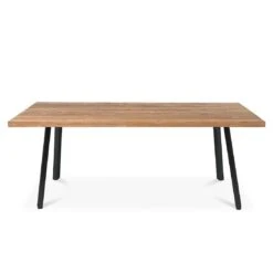 Im Setangebot enthalten ist auch ein passender Tisch. Die Platte wird aus recyceltem, also wiederverwertetem, Teak gefertigt. Hier werden bewusst Altersspuren wie Kerben oder Nagellöcher erhalten, so dass jeder Tisch ein wahres Unikat ist. Klassisch aus vier Tischbeinen besteht das Gestell des Tisches. Mit der rechteckigen Form lässt sich der Tisch platzsparend in Ecken oder an Häuserwänden aufstellen.