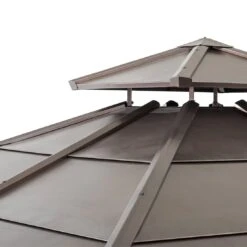 Gefertigt ist das stabile Grundgerüst aus massivem Zedernholz. Dieses Material ist überaus wetterbeständig und daher ideal, um im Outdoor-Bereich eingesetzt zu werden. Für die optimale Beschattung verfügt der OUTLIV. Pavillon über ein klassisches Walmdach aus rostfreiem Stahl und Polycarbonat. Damit Sie beim Sitzen optimale Lichtverhältnisse genießen können, ist oben ein elegantes Dachfenster für ein natürliches Oberlicht eingebaut.