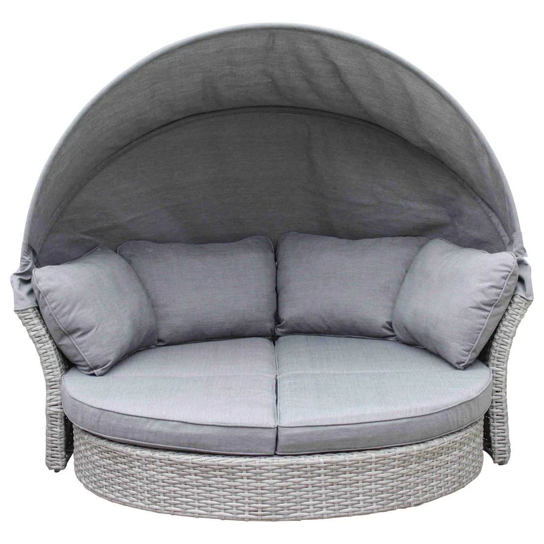 Dank des leichten Gestell-Materials Aluminium zählt die Sonneninsel Seattle zu den leichteren Modellen und lässt sich somit im Garten ohne Aufwand bewegen. Das Gestell, das mit hochwertigem Polyrattan umflochten ist, bringt ein exklusives Ambiente auf Ihre Terrasse. Dieses Material zeichnet sich durch eine hohe Wetterbeständigkeit aus. Die Sitzfläche ist mit einem outdoortauglichen und komfortablen Stoff in der Farbe Grau-Meliert bezogen. Auch wenn dieser Wind und Wetter trotzt, empfehlen wir, die abnehmbaren Kissen bei länger andauernder Feuchtigkeit in der Wohnung bzw. in Ihrem Haus zu lagern.