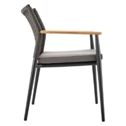 Das Gestell und die Sitzfläche sind aus Aluminium gefertigt. Damit das Gartenmöbel-Set optisch ansprechend ist, sind das Gestell und die Sitzfläche im Farbton Anthrazit gehalten. Als hochwertiges Material für die Bezüge kommt ein Acryl-Stoff zum Einsatz. Er ist sehr strapazierfähig und bietet somit die idealen Voraussetzungen für den Einsatz im Freien. Farblich begeistern die Bezüge in elegantem Grau. Zum Lieferumfang des Sets gehört auch ein praktischer Tisch. Die Gebrauchsspuren in der Tischplatte sind Teil des Designs der Tischplatte. Denn diese ist aus wiederverwertetem Teak gearbeitet, das zuvor aus alten Hütten und Booten gewonnen wurde. Bei der Aufarbeitung werden dann Einkerbungen, Nagellöcher und Co. bewusst erhalten. Jede Tischplatte und damit jeder Gartentisch ist also ein Unikat. Farblich überzeugt die Tischplatte in Natur. Als klassische Design-Komponente fungiert das geradlinige Vierfußgestell. Die rechteckige Form ermöglicht es Ihnen, den Tisch in Ecken und an Häuserwänden platzsparend einzusetzen.